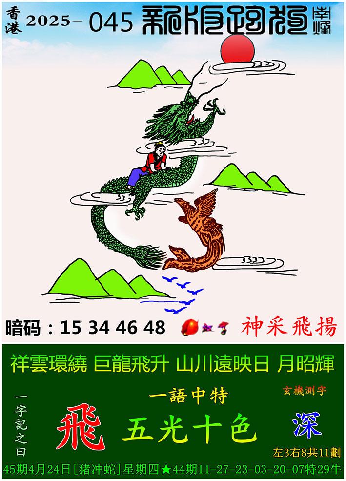 045期新版跑狗一字記之曰:【飛】 玄機測字:《深》 一語中特:五光十色