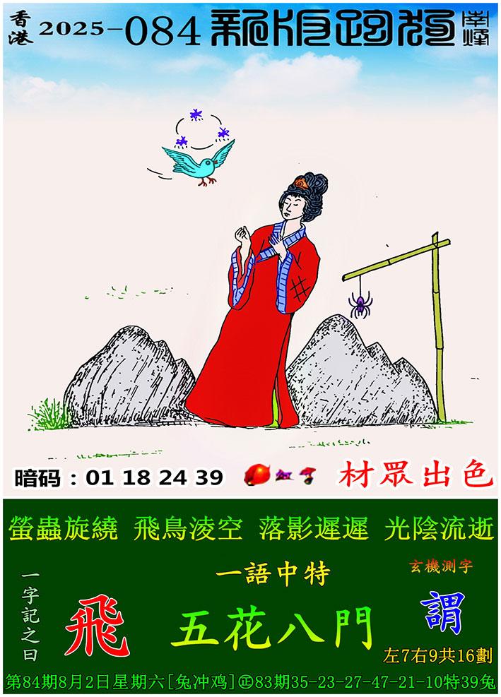 084期新版跑狗一字記之曰:【飛】 玄機測字:《謂》 一語中特:五花八門