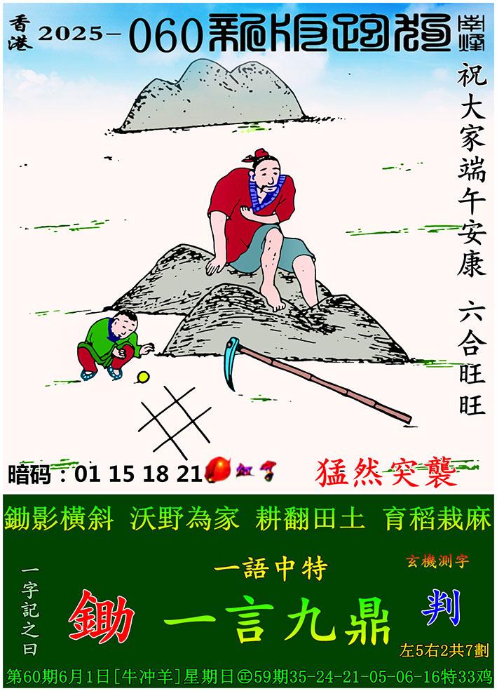 060期新版跑狗一字記之曰:【鋤】 玄機測字:《判》 一語中特:一言九鼎